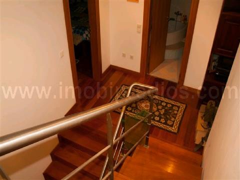 Moradia Geminada, rés do chão composto por cozinha, dispensa, wc comum, sala equipada com recuperador de calor, hall de entrada que dá acesso ao primeiro andar, composto por casa de banho comum, três quartos tendo um casa de banho privada, e zona de circulação com acesso a sótão com excelente espaço para arrumos e escritório. O alçado a Nascente apresenta uma varanda a toda a largura, abrangendo dois quartos com vista para o jardim, o alçado a Poente apresenta varanda com vista sobre logradouro composto por telheiro onde se encontra o barbecue e infraestruturas para equipamentos de aquecimento.